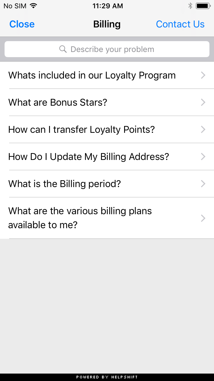 Guided ticket filing / Dynamic forms work as a wrapper on top of Helpshift's existing APIs. Each existing API needs to be wrapped in a "flow". A collection of these flows is displayed in a tabular form. A flow may contain a list of other flows (nested flows). In this case when user taps the parent flow, he is taken to another screen which list the child flows. In user's case, consider this hierarchy: