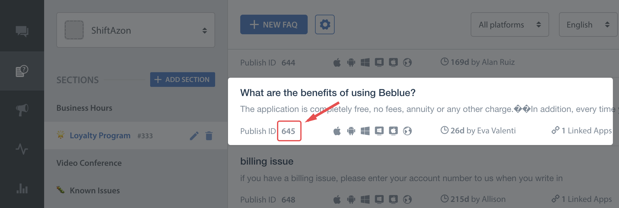 English translation will be used for non-localized FAQs To use deep linking in your app using Helpshift FAQs, check here.