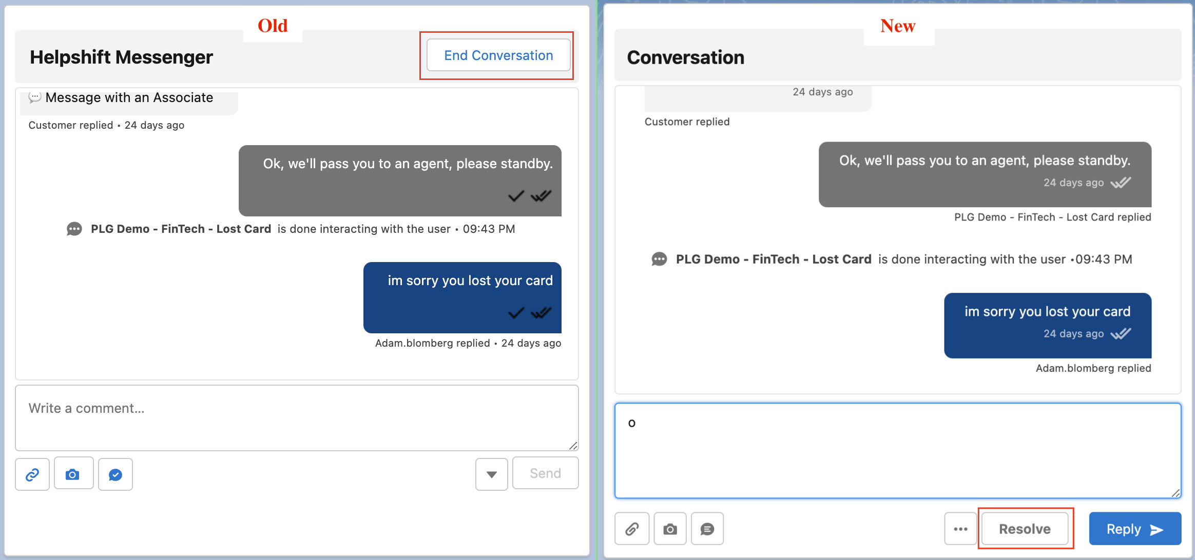 End Conversation button replaced with Resolve at the bottom of the messenger