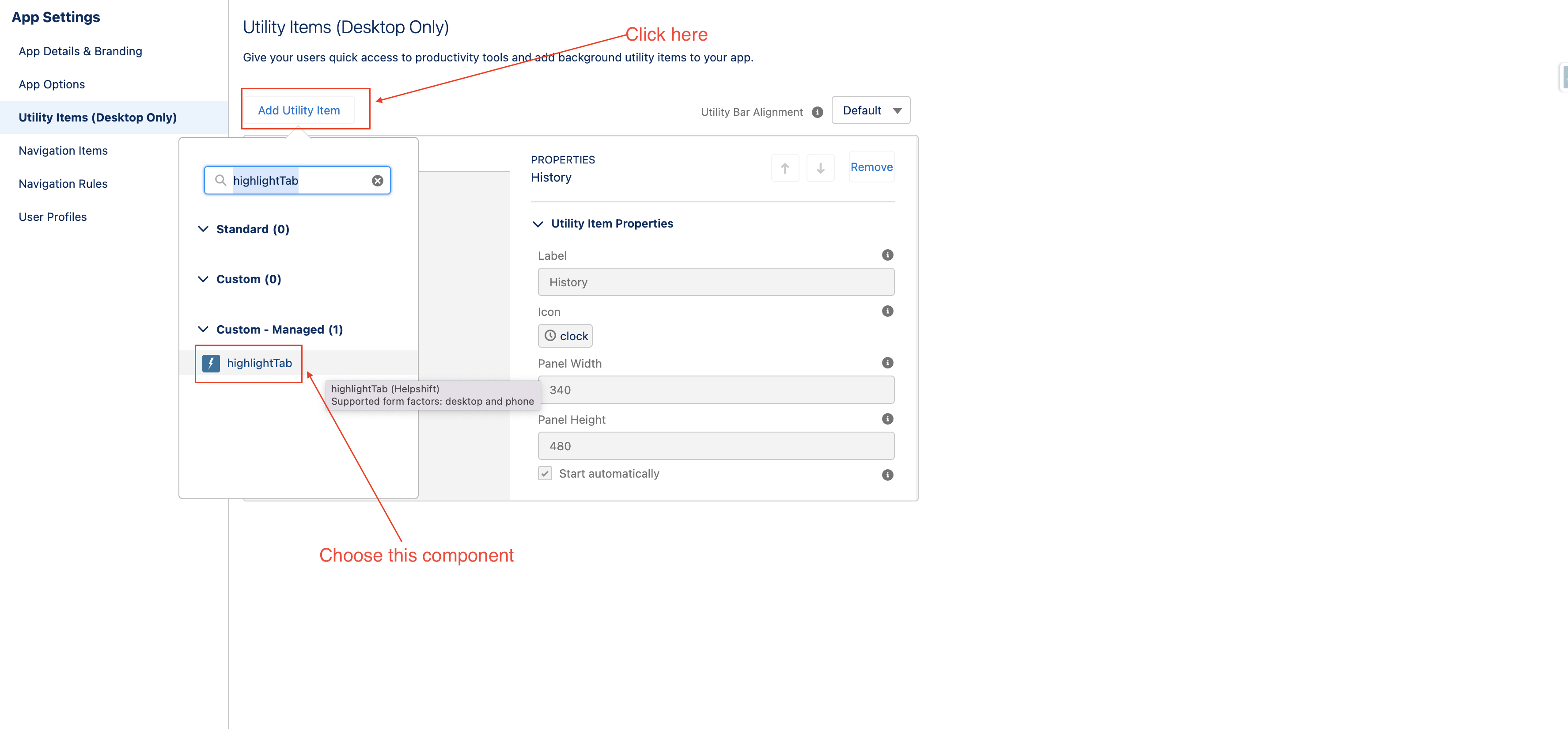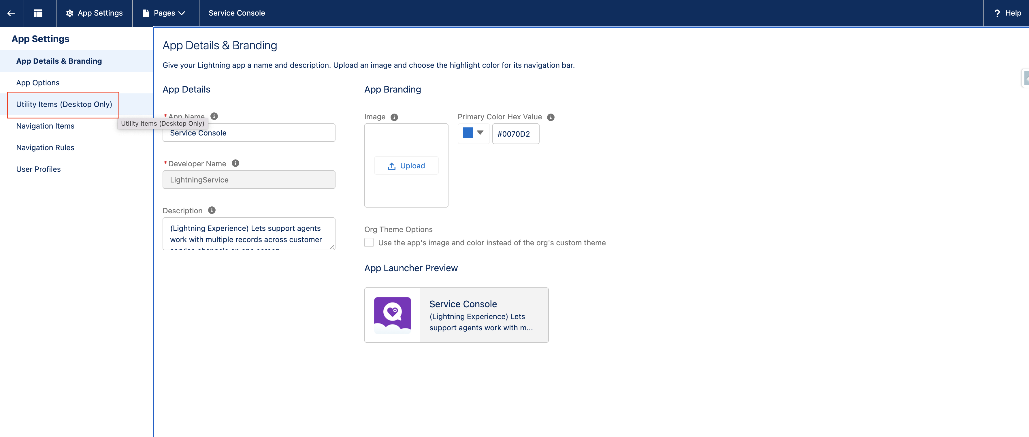 3. In the editor, click on Utility Items (Desktop Only) as shown below :